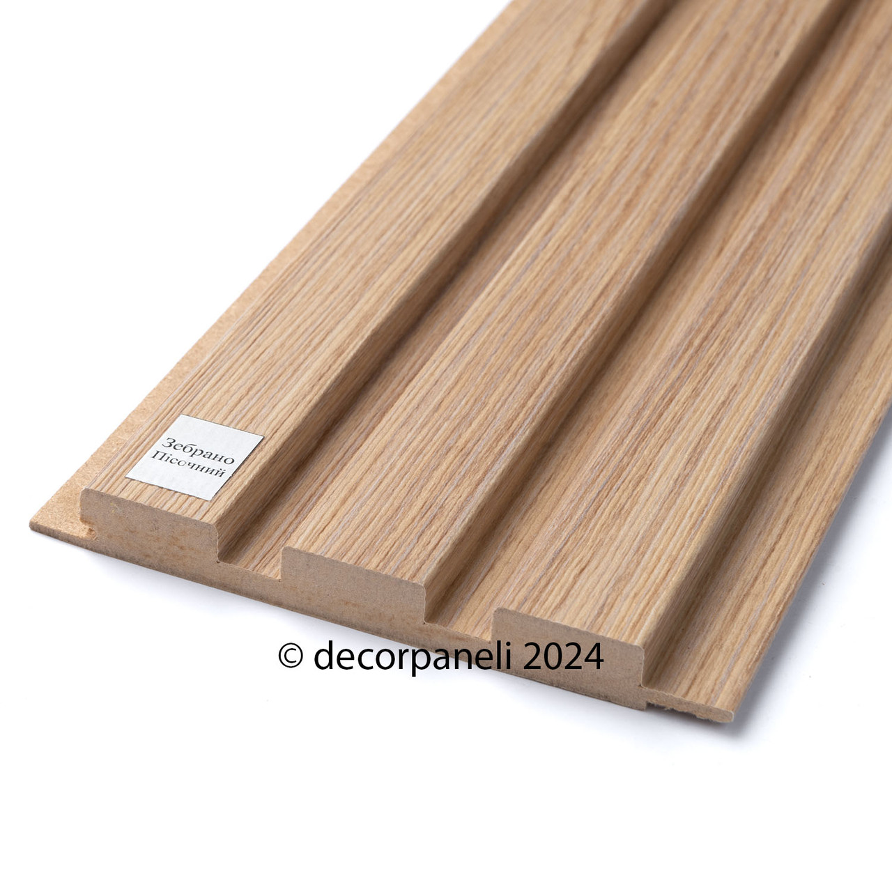 Опис кольору: Зебрано Пісочний - цікавий світлий колір стінових рейкових панелей, що нагадує світлий пісок з мʼякою текстурою - прожилками природних відтінків, має чітку текстуру та глибину. Панелям притаманний світло-коричневий відтінок з золотисто-жовтим підтоном, теплота та елегантність.
